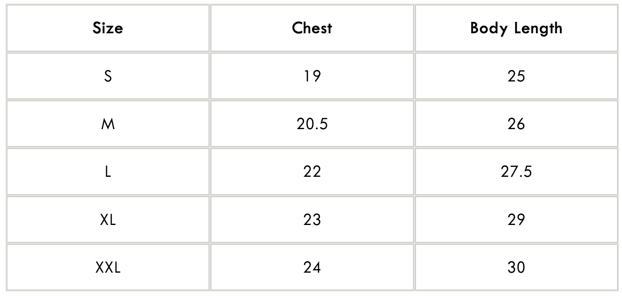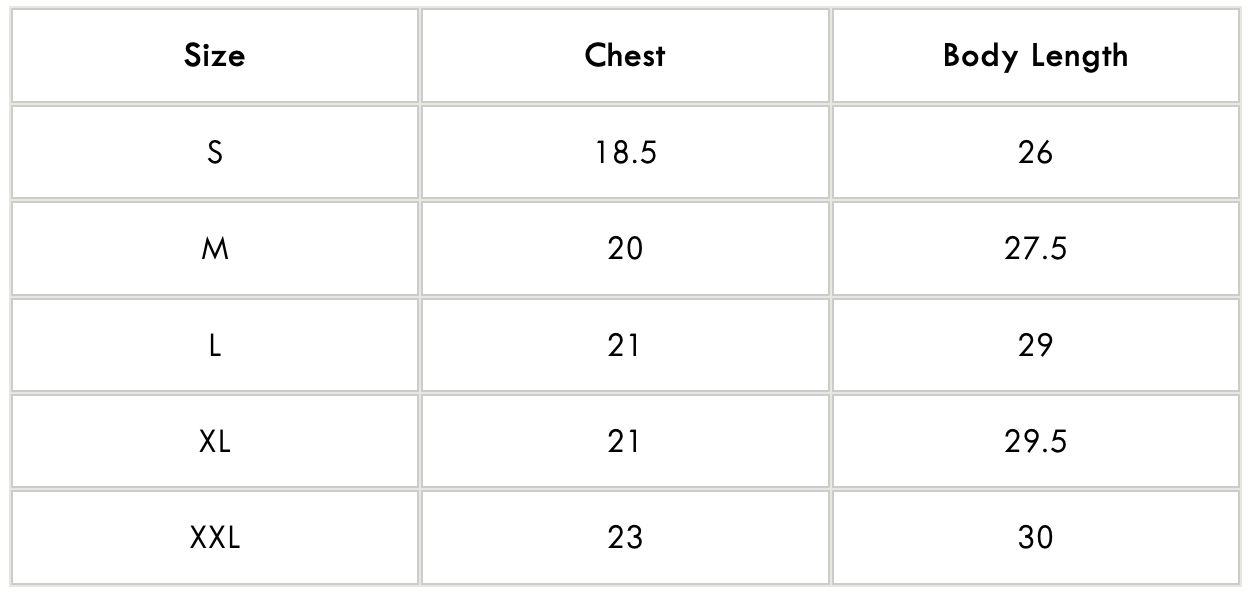Size Chart: ( Inches )