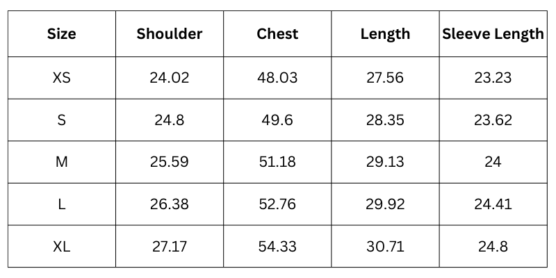 Size Chart (Inches):